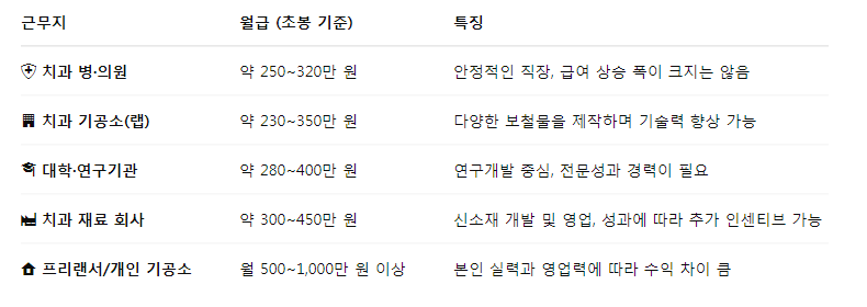 - 기공소의 규모와 위치(서울 vs. 지방)에 따라 초봉이 다를 수 있습니다.